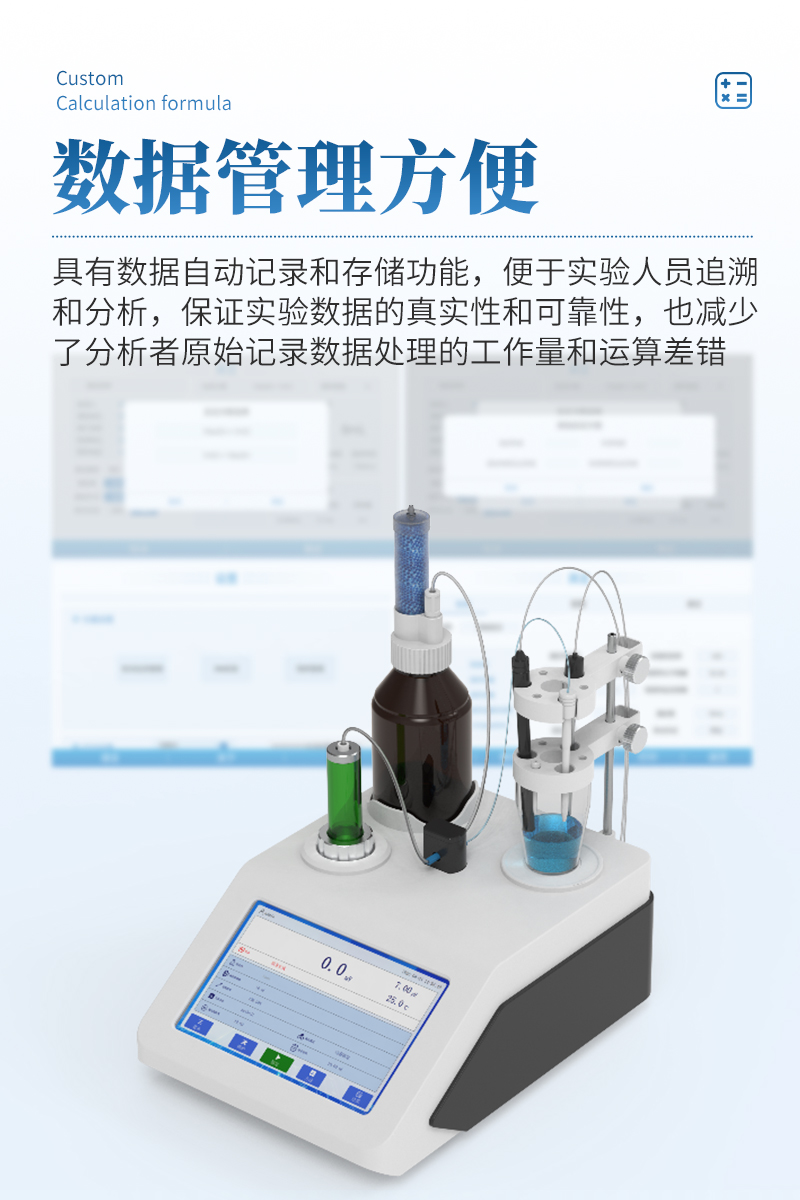 6. 操作簡單,高效快捷,檢測過程無需人為干預,操作者的健康和環境得到了**保障,同時節省了實驗員用于測試的時間成本,能夠快速完成滴定分析,減少實驗時間,提高實驗效率。