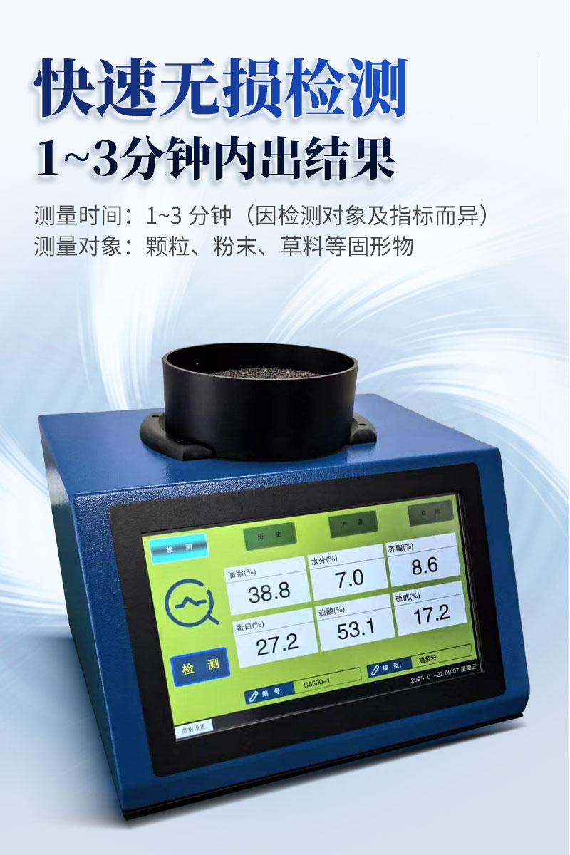 近紅外光譜分析儀,是針對原糧、食品、飼料等行業開發的** 檢測設備,可無損、快速、準確地檢測樣本的水分、脂肪、蛋白質等多種指標。